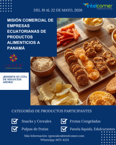 Del 19 al 22 de mayo de 2026, Panamá será la sede de una importante Misión Comercial de empresas ecuatorianas del sector alimenticio. Este evento representa una oportunidad clave para que empresas panameñas diversifiquen su oferta con productos de alta calidad y establezcan vínculos directos con exportadores líderes de Ecuador.